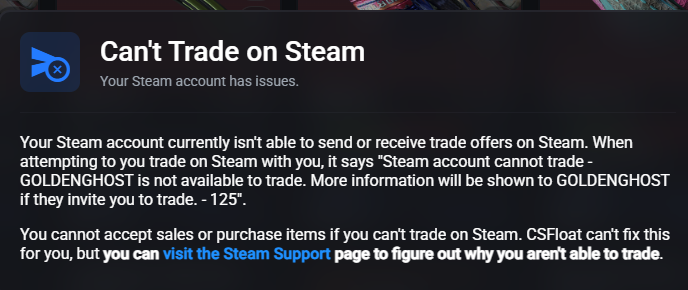 CSFloat'dan alışveriş yapmaya çalıştığımda bana bu uyarıyı veriyor. Nasıl halledebilirim?