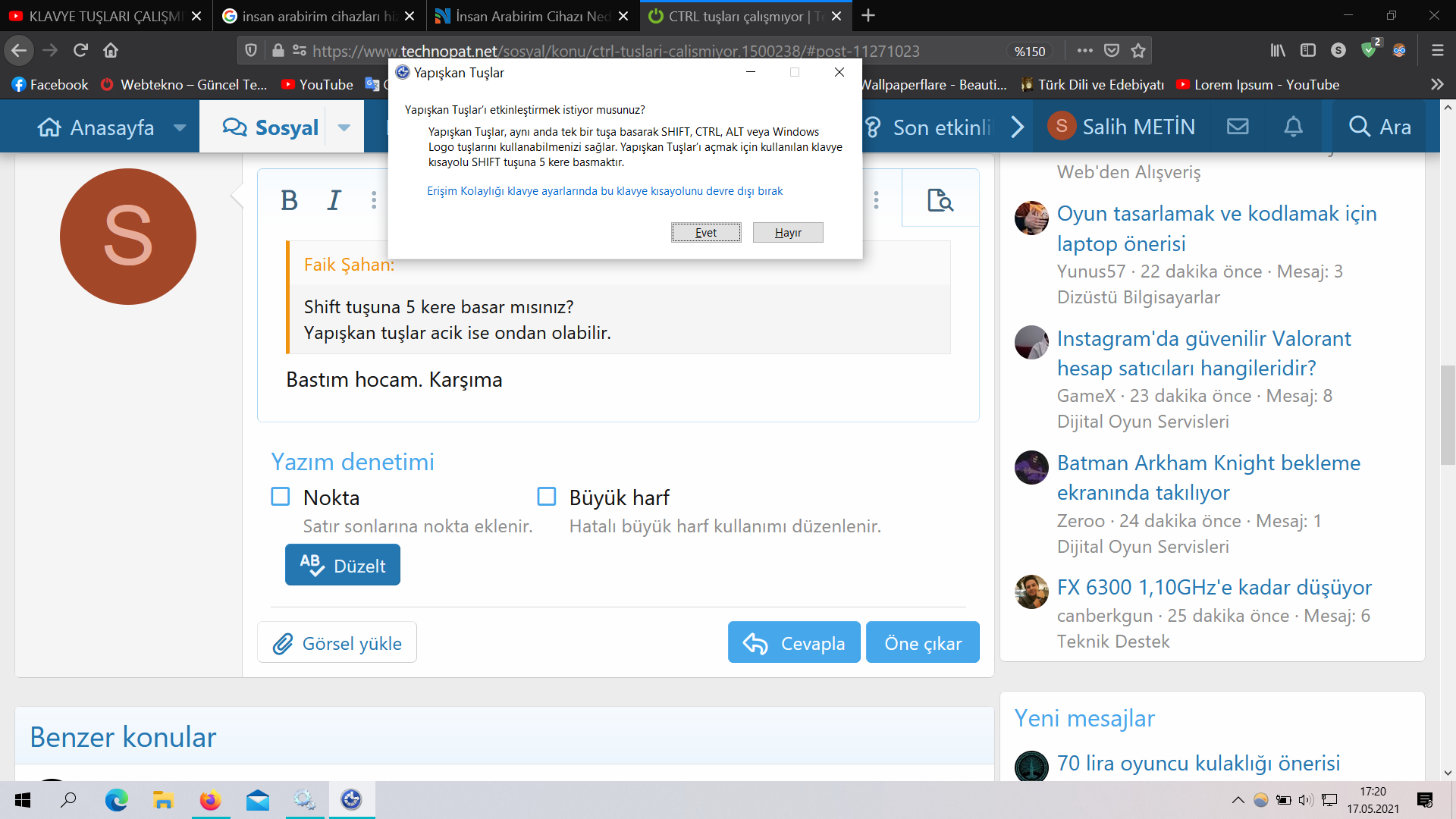 Merhaba arkadaşlar. Ne sol ne de sağ CTRL tuşu çalışıyor. Termal macun için servise götürmüştüm. Servisten geldikten sonra ara sıra çalışıyordu, şimdi hiç çalışmıyor. Klavyeyi Aygıt Yöneticisi'nden kaldırdım ama nafile. Sürücünü de güncelledim. Windows da güncel. CTRL kombinasyonları da dolayısıyla çalışmıyor. Sizce ne yapmalıyım? Klavyemi test ettim, yine de çalışmıyor. 😟