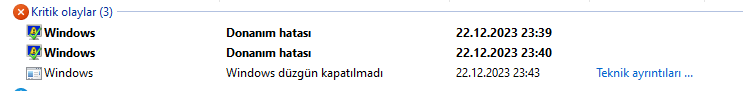 Merhaba, az önce öylesine bir CTRL+Shift+Windows+b yaptım ve ekran siyah oldu. Sonra bilgisayarımı tuşundan kapattım ve bir daha açtım sonra güvenilirlik geçmişine baktığımda 3 tane hata vardı. Sizce ekran kartında bir sorun olabilir mi?