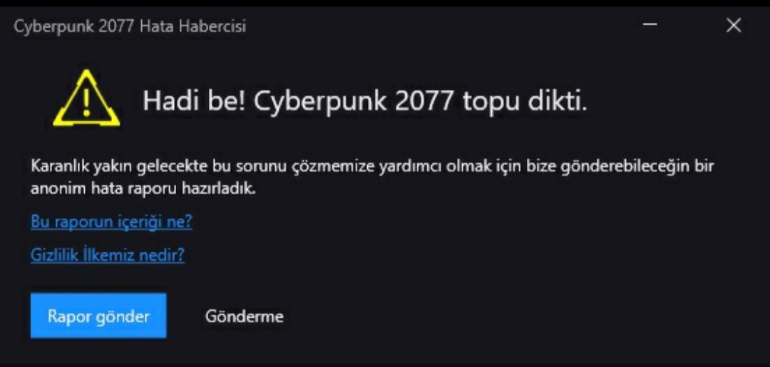 Birkaç gün önce Steam üzerinden 32 dolara Cyberpunk 2077 Ultimate Edition satın aldım ancak o gün bugündür oyunun random yerlerinde (lobi, oyun içi, ayarlar kısmı, karakter oluşturma kısmı fark etmiyor) her 10 dakikada bir "hadi be! Cyberpunk 2077 topu dikti!" crashini yiyorum. Çözüm olarak DDU üzerinden grafik kartı sürücüsünü silip tekrardan en güncel olanı kurma başta olmak üzere gerek NVIDIA App üzerinden, gerek oyun ayarları içinden, gerek ise bilgisayarım ve Windows üzerinden çeşitli yöntemler denedim ancak hiçbirisi gram işe yaramadı. Bu arada oyunu silip yüklemeyi ve dosya doğrulamayı da tabii ki denedim. Diğer oyunlarda böyle bir hata, crash vb. şeyler yemiyorum.