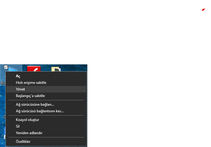 silince direk c diskine mi giricek kanka?1: Bu bilgisayar/ Sağ tık/ Yönet