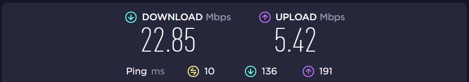 Bu sabah VDSL2 24 Mbps D-Smart internet kurulumu gerçekleşti. Hız değerleri göründüğü gibi. Oyun oynamadığım için şu anlık gayet yeterli. İnternete Wİ-Fİ ile bağlıyım. Modem ile cihaz arasında 2 oda var. Değerler aşağıdaki gibidir. Fiyat olarak ayda 118₺ ödenecek.
