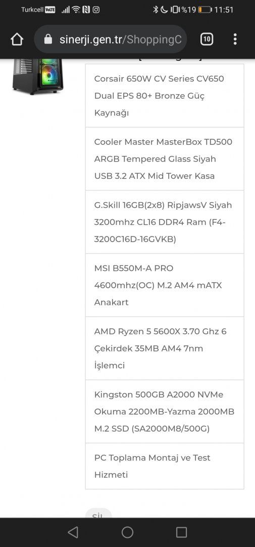 Sinerji DA-S1 Ryzen 5 5600X 16GB 500GB NVMe M.2 SSD RTX3060Ti [Oyun Bilgisayarı]