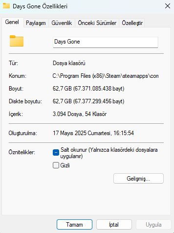 2 gündür "Days Gone" oyununu oynuyordum, bugün oyunu tekrar açmayı denediğimde: Steam oyunu tekrardan yüklemeye başladı. Oyunun yerel dosyalarına baktığımda ise oyun hala yüklü olarak gözüküyor.