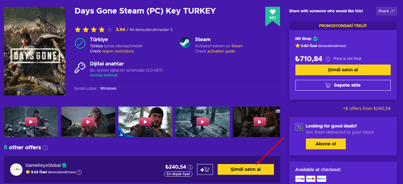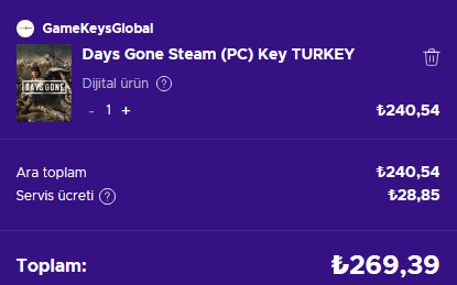 Eneba üzerinden çok iyi bir fiyata sahip, sadece Türkiye'de geçerli. Steam de şuan banka komisyonu hariç 400 TL gibi bir fiyata sahip. Eneba'da servis ücreti ile birlikte 269 TL.