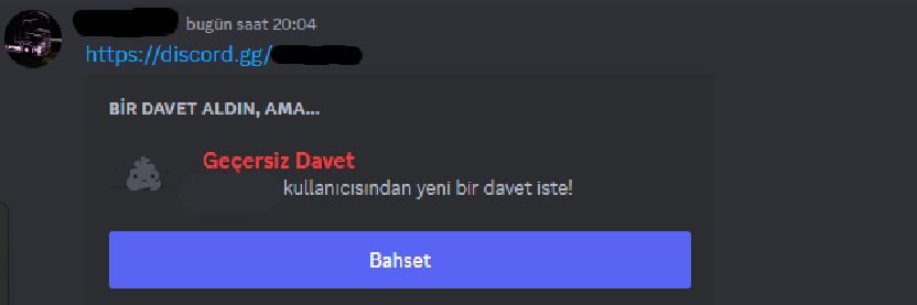 Hocam discordu açıp kapatın.Davetlerin süresi dolmadı her sunucuda aynı çbilen varsa ne oldugunu söylebilir mi?