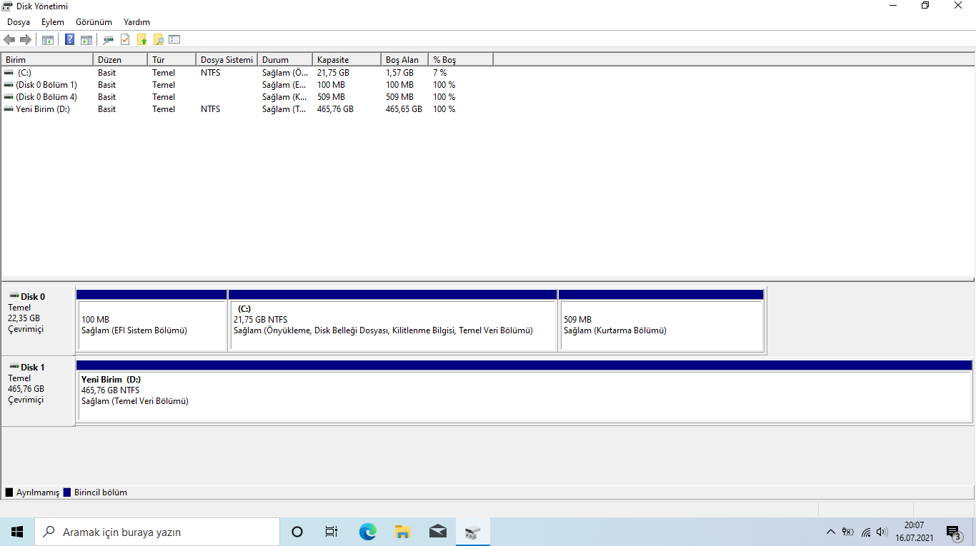 Arkadaşlar merhaba elimde Samsung marka laptop var bu laptopta 24 GB anakarta entegre edilmiş SSD disk mevcut bir de benim haricen eklemiş olduğum 500 GB HDD mevcut Windows'u SSD'ye kurduğum için SSD'de 1 veya 2 GB alan kaldı daha driverları kurmadım acaba HDD'deki alanın birazını C ye aktarma şansım var mıdır?