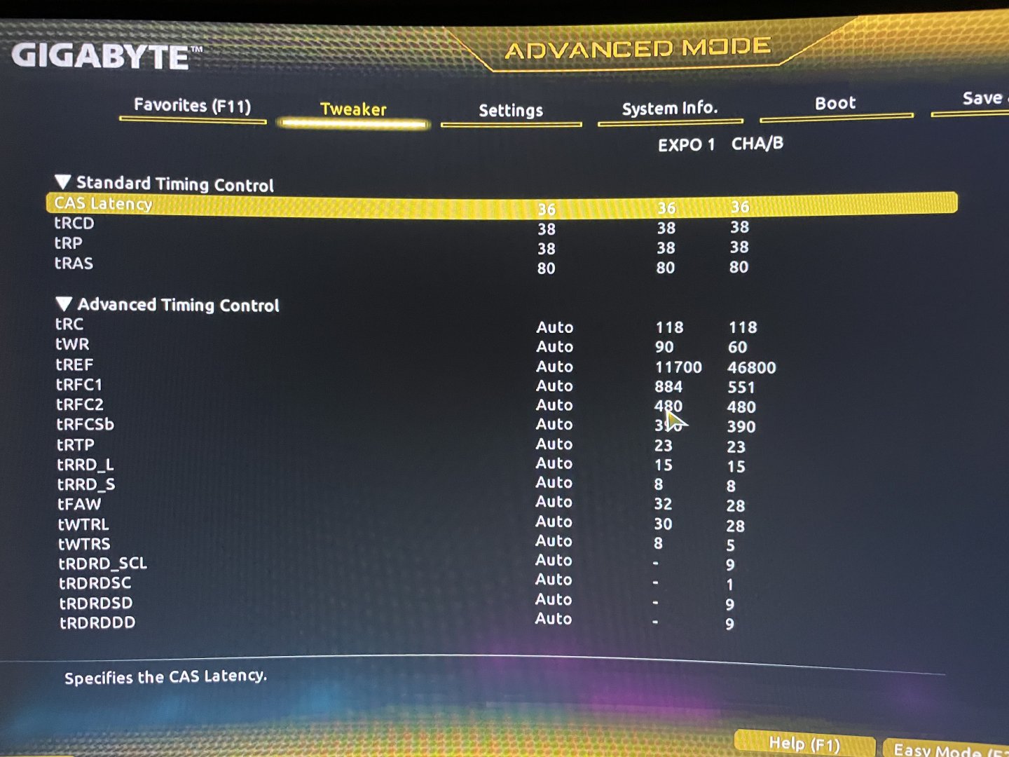 Merhaba, Kingston 6000MHz CL36 DDR5 SK Hynix DRAM'li RAM'lerime overclock yaptım ancak çoğu otomatik ayarların bir tık üstü olacak şekilde.