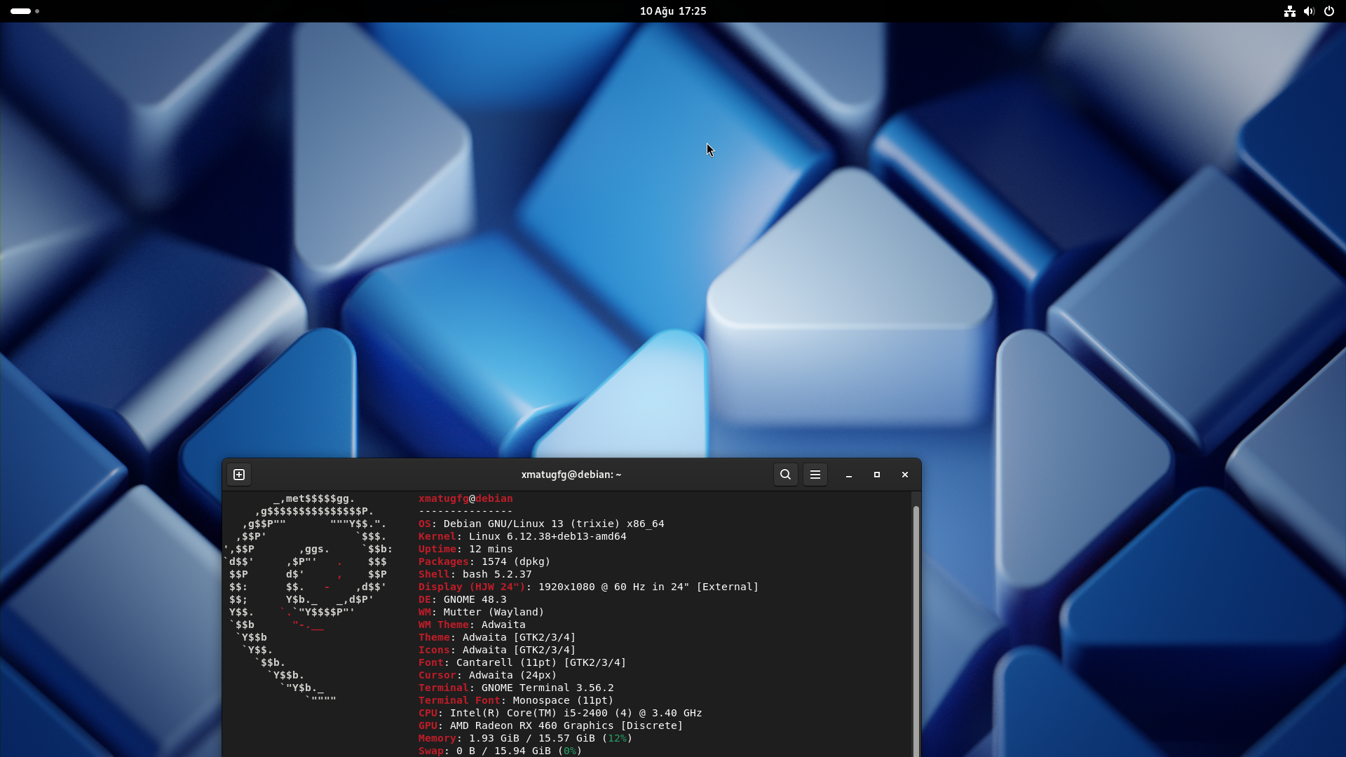 YouTube'da incelemesini izlediğim bir yayıncı Debian 13 hakkında ilginç bir konuya değindi. Debian genelde kararlılık için eski masaüstü ortamları ve çekirdekleri kullandığı için güncelliğin ikinci planda tutulduğu bir dağıtım olarak biliniyor. Bu da diğer dağıtımlara kıyasla Debian'ın zayıf noktasıydı. Fakat Debian'ı ilk kez bu kadar güncel masaüstü sürümü ve çekirdekle görüyorum dedi. Yani alışılagelmişin dışında bu sefer karşımızda gayet güncel bir Debian var. Bu güncelliği kararlı sürümle sunabilmesi takdire şayan.