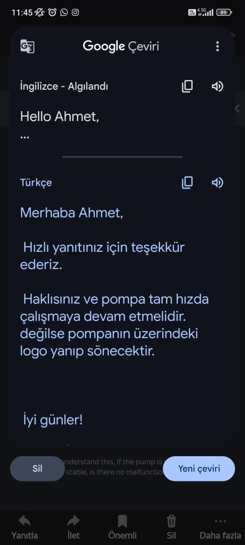 Sonra full speed e alınca tekrar aradım, hani pompanın ömrü atıyorum 5 yılsa full yükte 2-3 yıla iner mi diye sorduğumda sıkıntı olmayacağını söylediler.