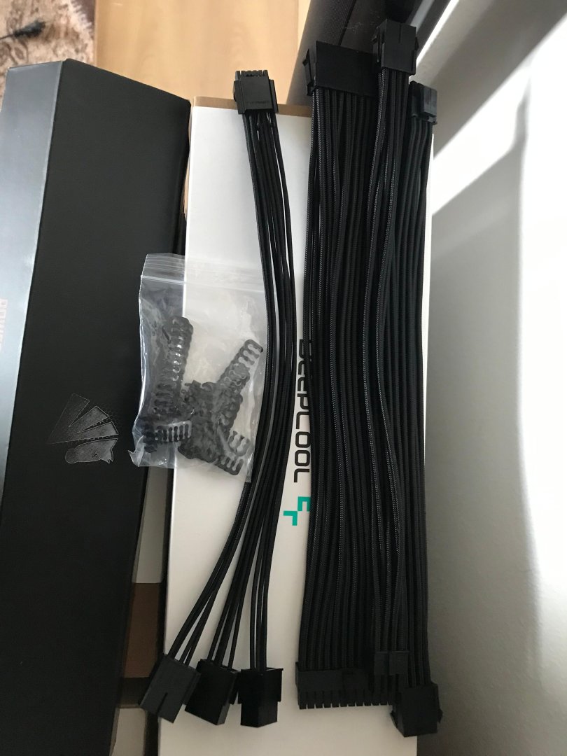 Kablo seti geldi sonunda. 12 pin gpu kablosu biraz ince gibi geldi bana ama kalite olarak sağlam gözüküyor şuanlık. @Oresi @Andar Han