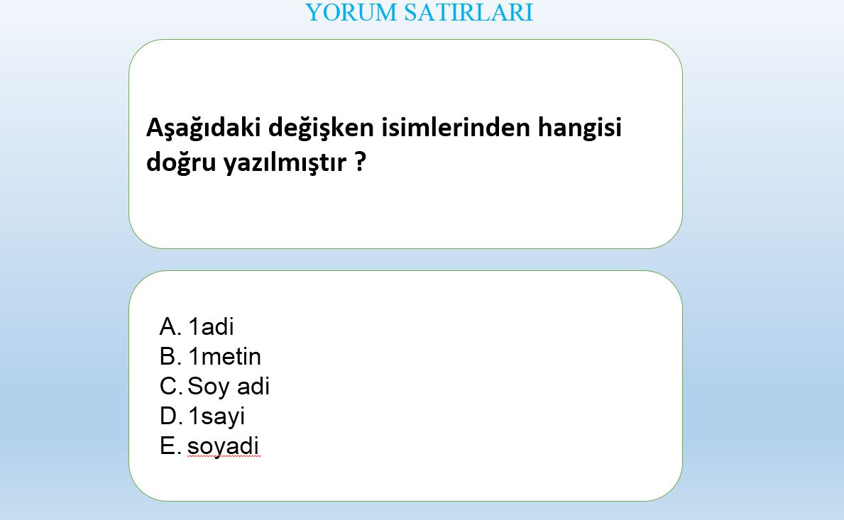 Arkadaşlar bir sorum var, cevabını bulamadım. Cevabın "soyadi" olduğunu düşünüyorum. Sizce ne?
