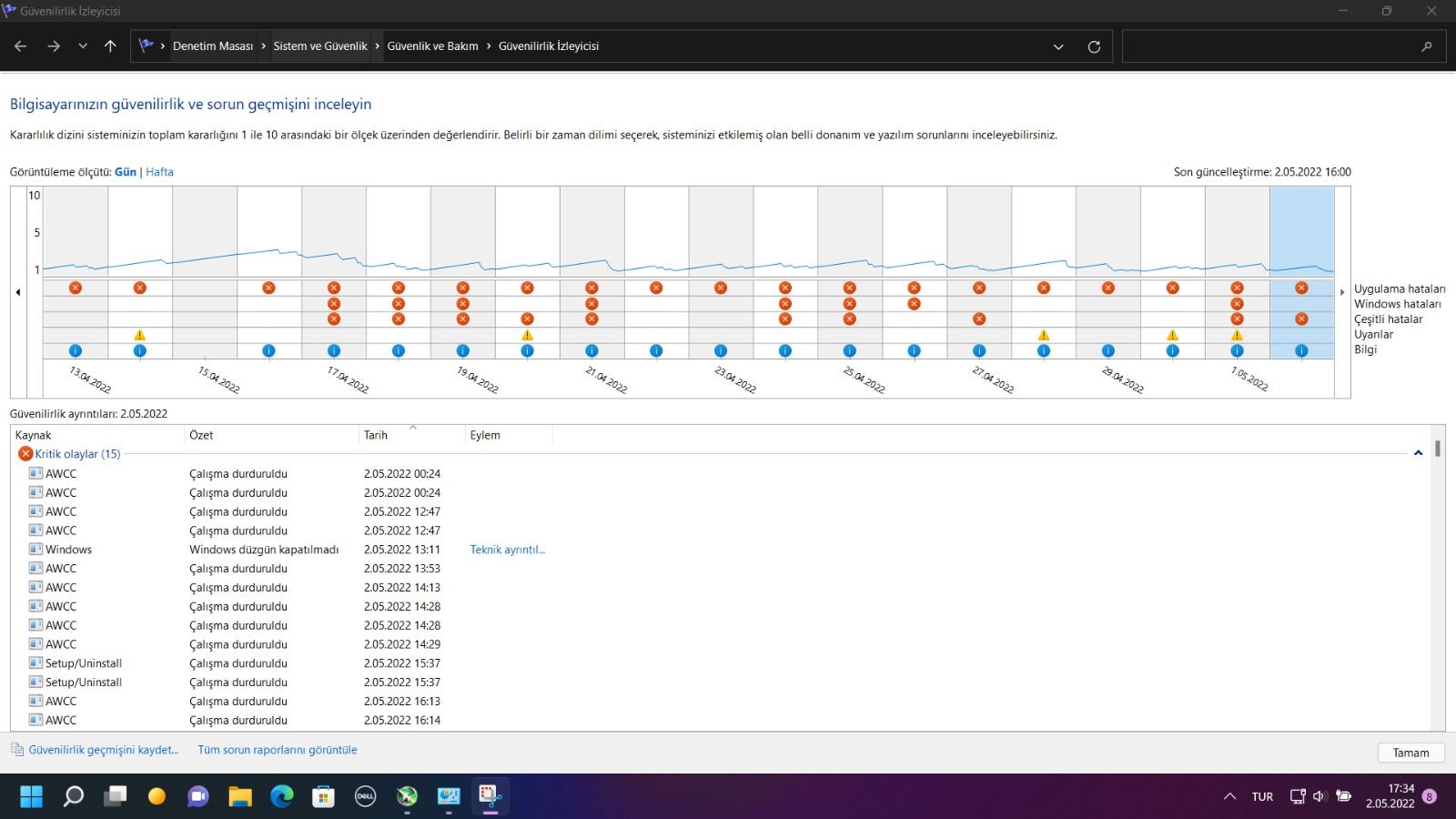 1 ay önce aldığım Dell marka laptop oyunlar sırasında sürekli mavi ekran hatası veriyor. Genel olarak çok sistem istemeyen oyunlarda bile ( Sifu gibi) mavi ekran hatası alıyorum. Aşırı ısınmaya bağlı olduğunu düşündüğüm için Turbo Boost'u kapattım ve işlemci güç yönetiminden en yüksek ve en düşük işlemci kullanımlarını azalttım ama sorunum hala çözülmedi. Dell teknik desteğe yazınca da gelişmiş bir yazılım sorun giderme işlemi yapmaları gerektiğini söylüyor ama şu anda cihazımı servise gönderemem işlerimden dolayı. Gelişmiş yazılım sorundan kasıtları ne olabilir ve bu sorunları ben çözebilir miyim? Aldığım bazı hataları ve sıcaklık değerlerini paylaşıyorum. Şimdiden teşekkürler.