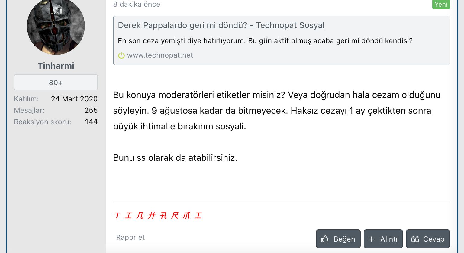 Kendisinin hala (haksız) cezası sürüyor 9 Ağustos bitecek.