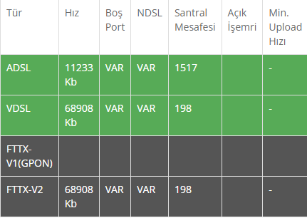 Buradaki hat değerleriniz, ve alttaki siteden altyapı sorgulamanızın fotoğrafını paylaşırsanız yardımcı olmaya çalışırım: