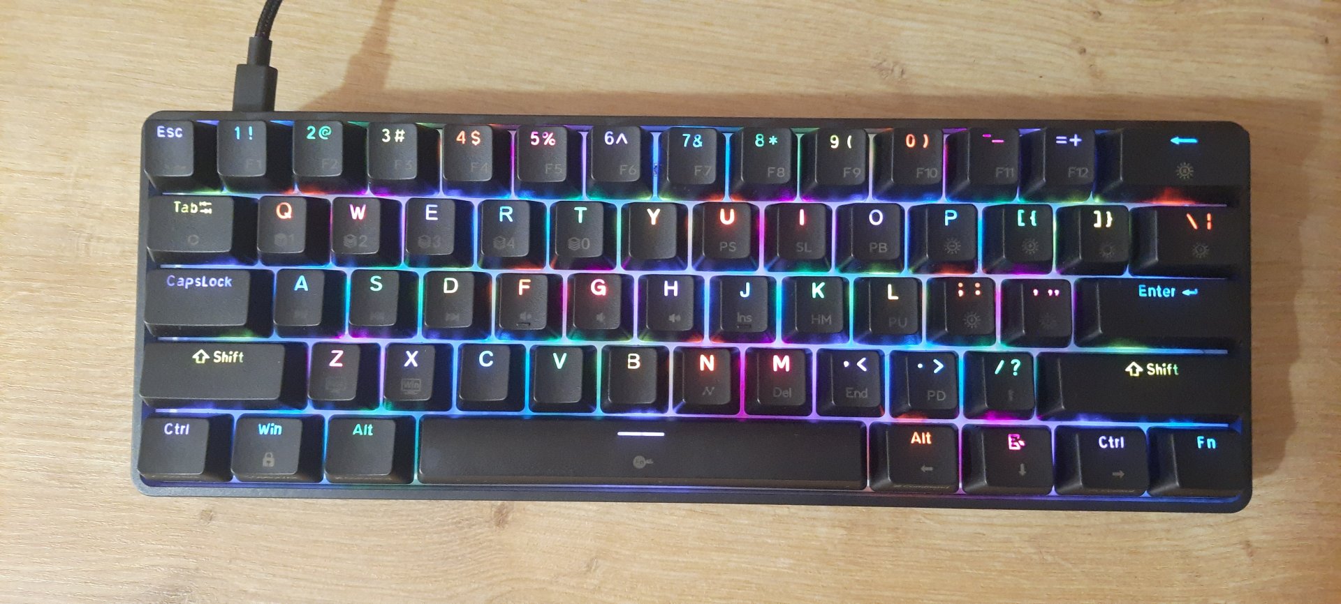 İngilizce layout olması bir tek enter tuşunun ufak olmasında problem yarattı bende, cümlelerin sonuna yanlışlıkla virgül koyabilirsiniz. Kısa süre içinde alışılıyor.Multimedya ve F tuşlarının eksikliği ise %60 klavyelerle alakalı genel bir durum. Fonksiyon tuşların yerleşimi ise bana rahat geldi açıkçası, kısa süre içerisinde buna da alışabildim.