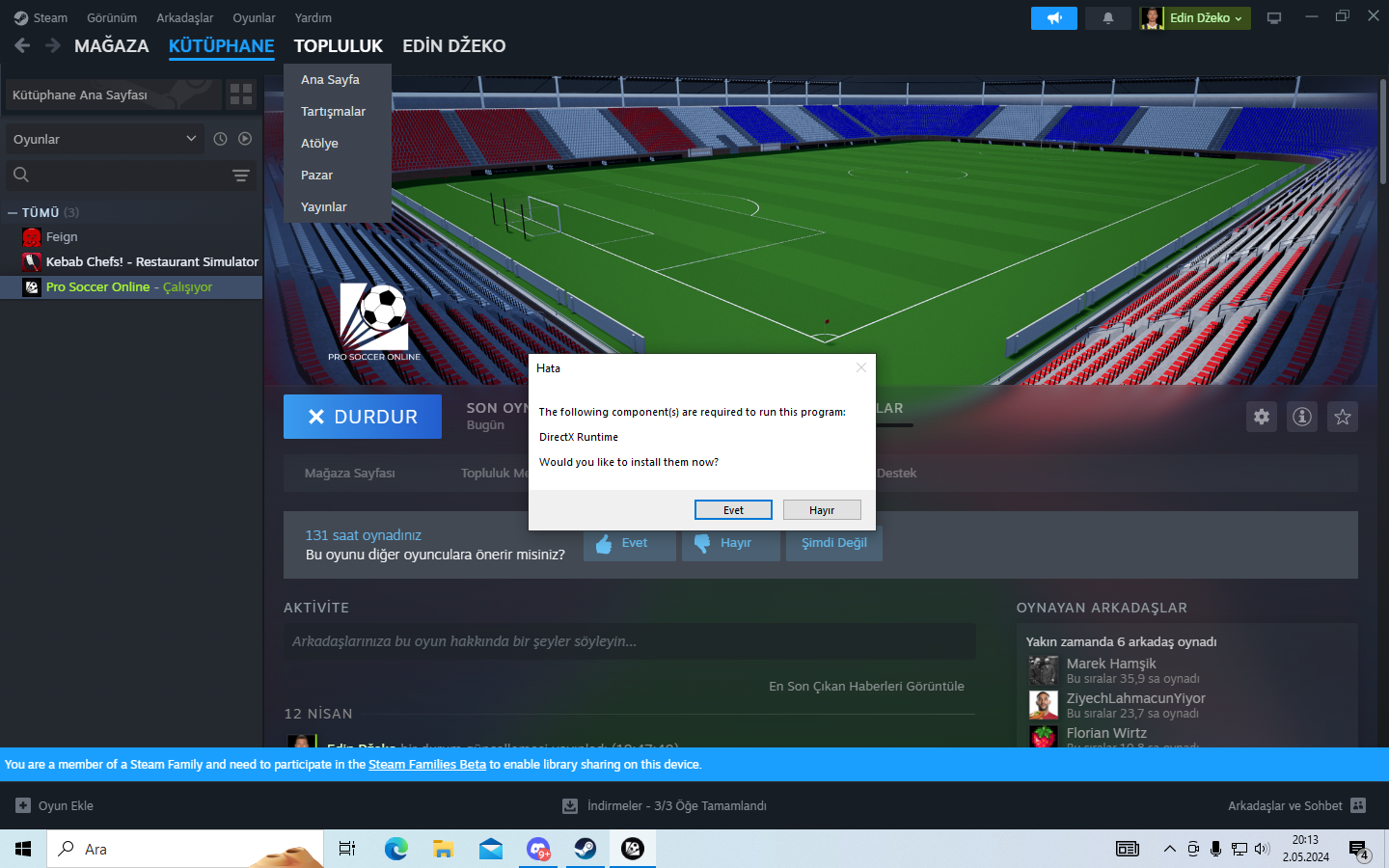 Arkadaşlar yeni format attım bilgisayara ve Pro Soccer Online adlı oyuna girmeye çalışınca böyle bir hata alıyorum. Yüklememe rağmen yine bu hata geliyor. Ne yapmam lazım? Yardım edin. Bu oyunu 400 saat oynadım ama artık oynayamıyorum.