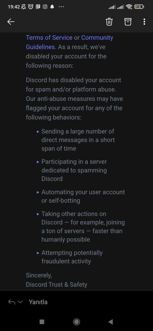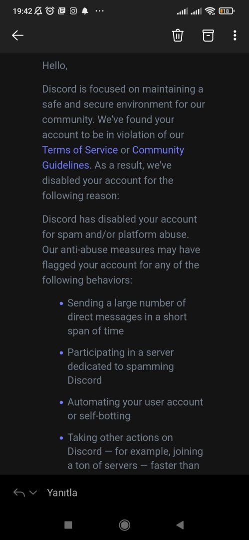 Merhabalar, hayırlı günler, Discord "your account has been disabled" hatası alıyorum. Sunucumu kontrol etmek için, yan hesap kurup kontrol amaçlı bakacaktım telefon numarası falan da girdim ama bu şekilde disabled yazdı.
