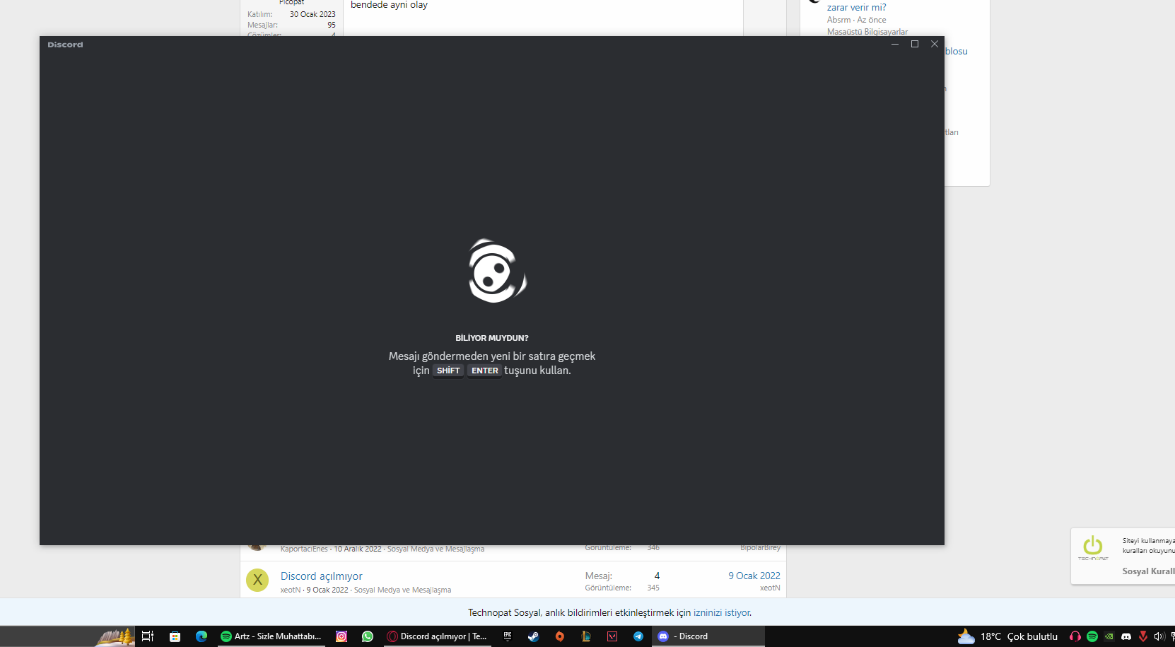 Discord böyle açılıp kalıyor bir türlü girmiyor, appdatayı sildim tekrar açtım, Discord'u silip tekrar yükledim, telefondan denedim, başka tarayıcardan girdim(Opera, Chrome, Brave) o da olmadı en son VPN açıp Opera'dan girdim o zaman girdi fakat VPN olduğu için internet çekmiyordu konuşamadık daha sonra hata verdi kapattım, bilgisayarıda yeniden başlattım bir türlü olmuyor. Bilen var mı? Arkadaşlarımdanda 2 kişide sorunsuz açılıyor 3 kişide de benim gibi oluyor.