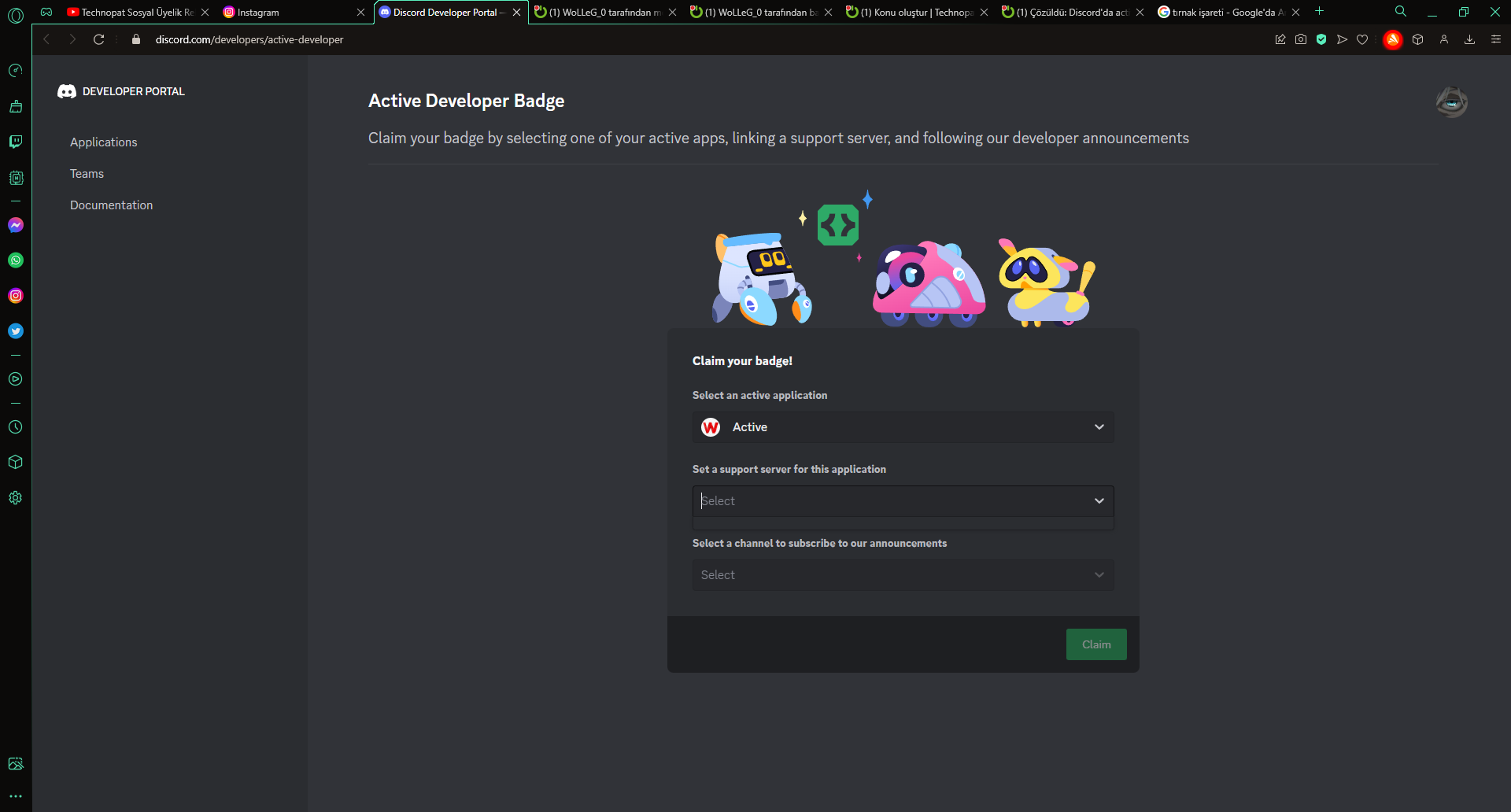 Öncelikle merhaba Discord active developer rozeti alırken ”Set a Support server for this application” kısmında sunucuyu seçemiyorum. Her şeyi yaptım. Fikri olan var mı?