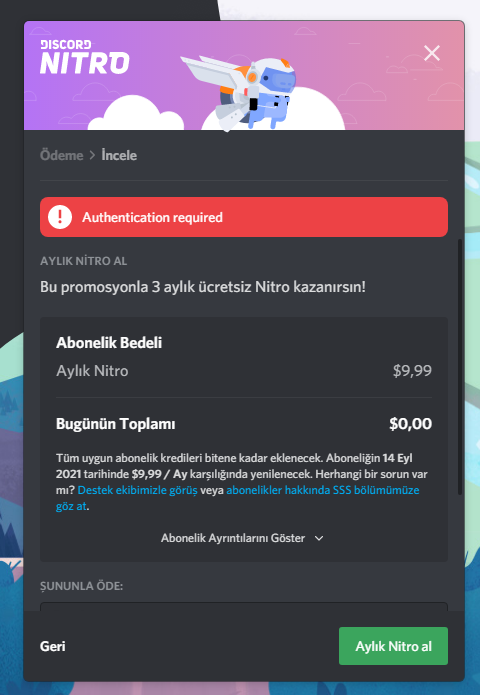Epic Games'in ücretsiz verdiği 3 aylık Discord Nitro'yu alamıyorum. Telefon numarama kod gönderiyor, kodu yazıyorum yine aynı yere atıyor.