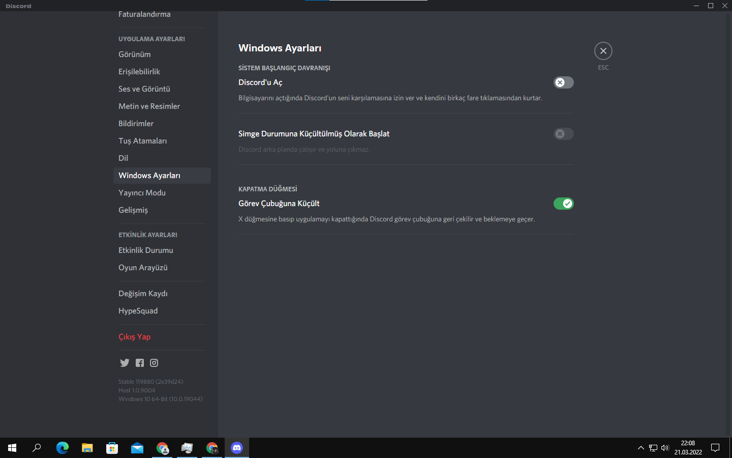 Discord ayarlarından simge durumuna küçülmüş olarak başlat seçeneğini işaretliyorum fakat Discord açılıyor sonra geri arkaya alıyor kendisini. Ben arkada açılıp kendisini beklemesini istiyorum. Nasıl yapabilirim? İşi karıştıran Windows Update diyor. Çözümü var mı bunun?