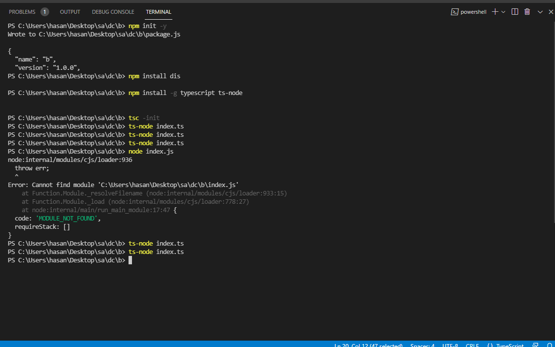 ts-node index.ts den sonra bot is ready demesi gerekiyor sanırım ama olmuyor.
