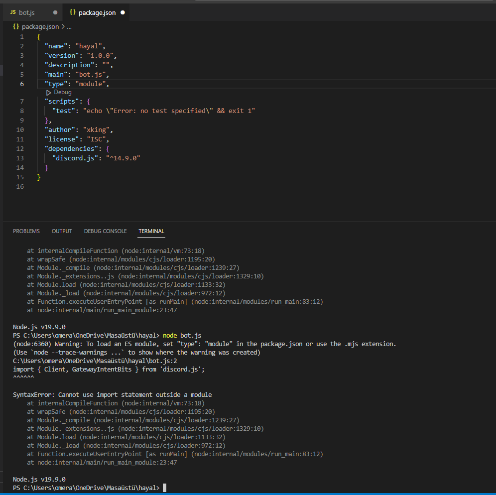 Node bot.js yazdığımda çalışmıyor pek fazla bilgim yok, kodlamayı da az bir şey biliyorum. YouTube'da araştırdım fakat bir sonuç alamadım yardım ederseniz severim.www.technopat.net