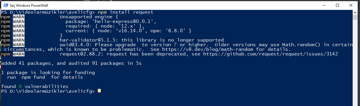 Modül indirilmemiş, hatayı tam olarak atar mısınız?