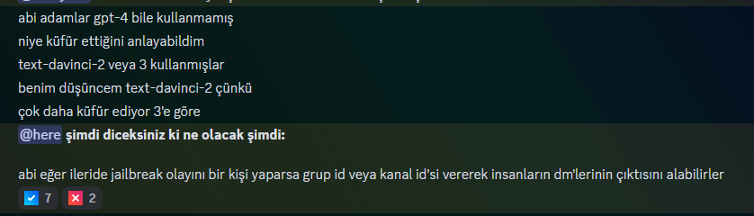 İçerisinde bulunduğum ünlü bir Türkçe Discord botunun sahibi bu bot hakkında bir konuşma yaptı. Botta çok büyük güvenlik açıkları olduğunu ve ufak bir jailbreack ile tüm verilerinize erişilebileceğini söylüyor. Bu şekilde diyerek hepimizi korkuttu şahsen ben botla ilgili şüpheler duymaya başladım. Koskoca Discord'un botunda bu kadar açık mı var tüm verilerimizi satabilir mi veya insanlar verilerimize erişebilir mi gibi korkular sardı. Şahsen botla en az bir kere konuştuğum için onayladım politikasını. Botun sahibi de onayladı galiba denemiş bir ara. Sık sık kullanmayın hatta kullanmayın ileride tehlikeye girersiniz falan diyordu. Discord sohbetlerimize falan ulaşılabilirmiş mesela. Verilerimize erişilebilme kısmında tam olarak hangi veriler onu bilmesem de bayağı herkesi uyaran bir duyuru attı. Sizler bu konuda ne düşünüyorsunuz? Clyde sizce güvenlik açıkları içeriyor olabilir mi gelecekte sorun çıkartabilir mi? Tüm sohbeti okuyor sonuçta bir sunucuya eklendiğinde.