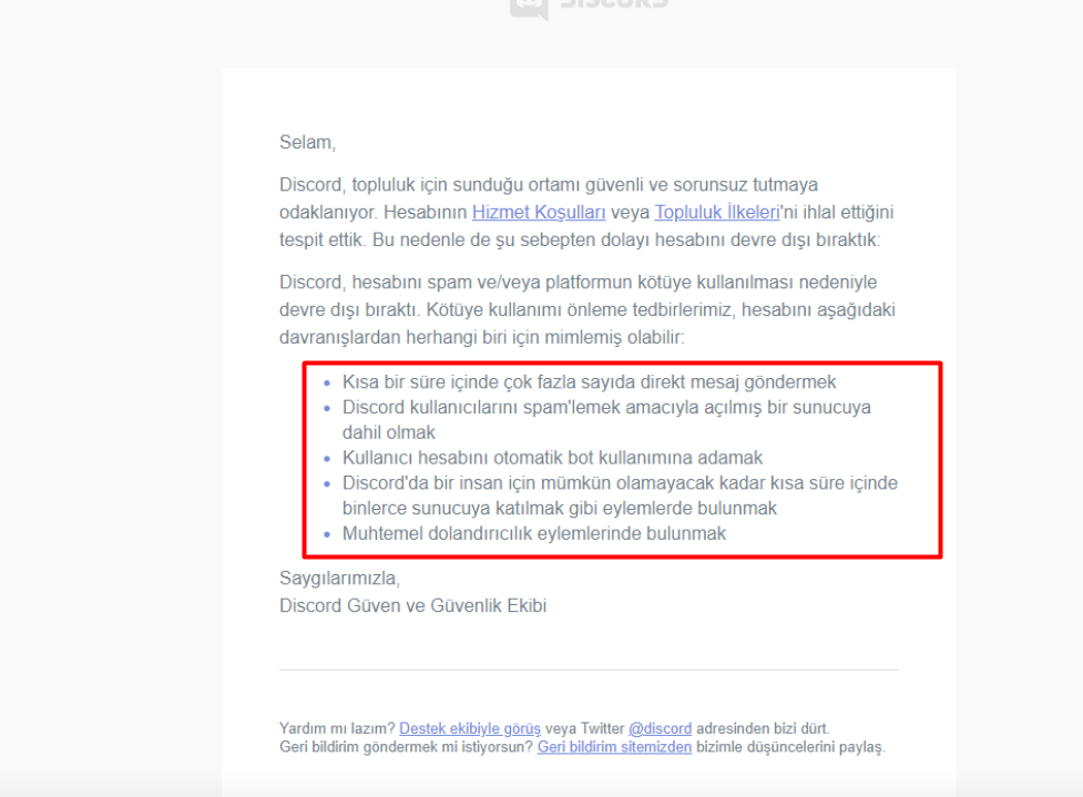 Discord'a girmiştim ve hesabıma girecektim. Orada yazan bir şey gördüm "Discord hesabın devre dışı bırakıldı." Hesabımı nasıl geri açarım? Discord'a mail gönderdim, cevap verdiler.