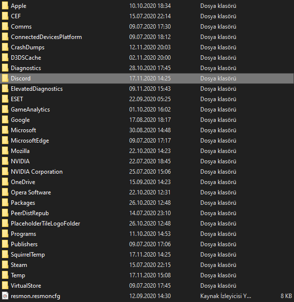 Bu klasördeki "Discord" klasörünüde bulup kaldıralım.Evet, yapacağımız işler bitti tekrar Discord'u kurup kullanmaya devam edebilirsiniz.