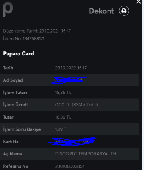 Arkadaşlar bugün Discord'a 1 aylık bedava Discord Nitro gelmişti. Papara kart ile almayı denedim Tutar: $0 yazıyordu ve ödemeye devam et dedim. Doğrulama kodu istedi bende girmedim ve dekonta girdiğimde böyle bir şeyler yazıyordu;