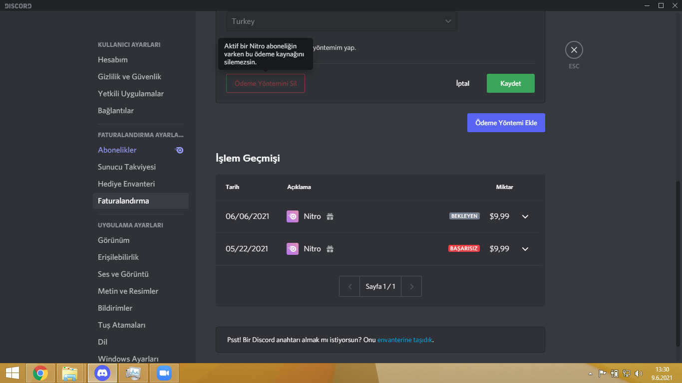 İlk defa nitro aldığı için tedirgin oldum :"/ Ben Discord'un 1 aylık hediye ettiklerinden aldım. Aldığım gün iptal edip, kart bilgilerini vs. faturalandırma bölümünden sildim. Aşağıya fotoğraf bırakacağım. Durum böyle. Para kesilir mi bu yaptıklarımdan sonra?