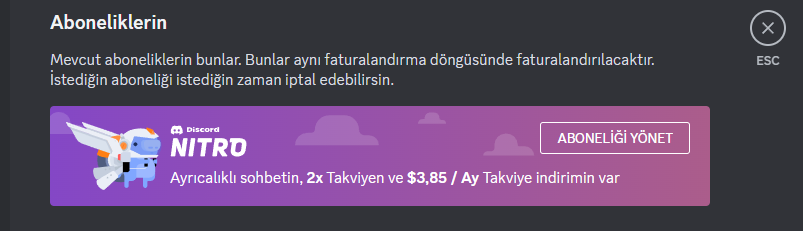 Discord Nitro'ya anlık olarak zam geldi şu an güncel fiyatı 3.85$ yani 75 TL.