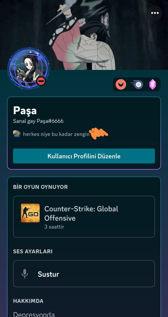 Hocam tamda isteklerinize uygun bir şey biliyorum.Merhaba, Discord Nitro kullanıcısıyım. Hem banner hem de profil resmi birbiriyle bağlantılı ve profil rengi bunlarla uyumlu olsun istiyorum. Nasıl bir profil önerirsiniz?