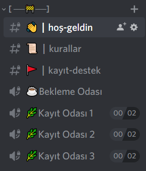 Sunucuya gelen kullanıcı ilk başta sadece bu odaları görmüş olacak. Kayıt ekibi ise yeni gelen arkadaşları kaydedip öyle sunucuya alacaktır.