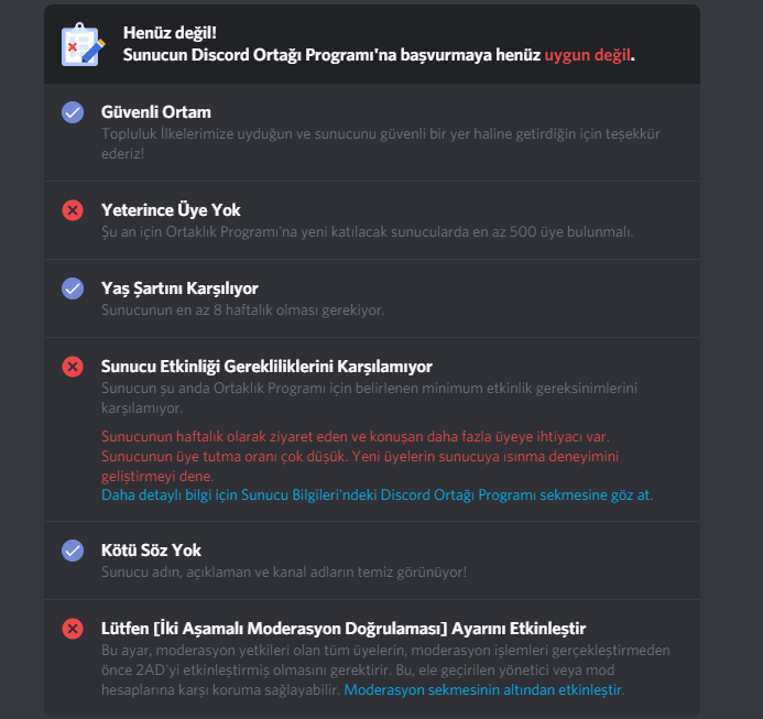 Discord Partneri olmasına gerek yok, keşif programına katılmalı bunun içinde en az 7000 üyesi olması gerekiyor. Aksi halde katılamaz.Eğer orada çıkan sunucu yapmak istiyorsanız Discord Partneri olmanız gerek diye biliyorum. Bunun için gereken şartlar bunlar.Eki Görüntüle 1014907