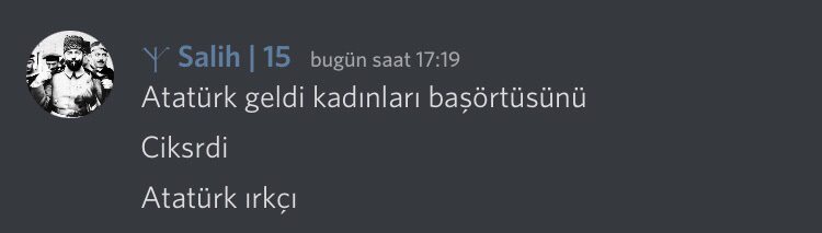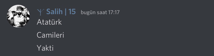 Atatürk’e ciddi hakaretlerde bulunan bir arkadaşı biz şikayet etmiştik. Herif çizgiyi o kadar aştı ki içimizden “seninle uğraşmayanın (…)” diyorduk, ardından şikayette bulunduk ve şikayette bulunan arkadaşımızın telefonuna işlem başlatılmıştır diye bilgilendirme mesajı gelmiş söylediğine göre. Bilmiyorum kim ilgileniyor ama yaşadığımı anlatıyorum. Hatta aşağıda vereyim çocuğun ithamlarını, gerçekten tiksindirici şeyler yapmayın bunları.Selam, Discord'da ağır sövüştüğüm biri sanaldan CİMER'e şikayette bulundu, CİMER bu tarz şikayetleri pek dikkate alıyor mu?