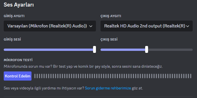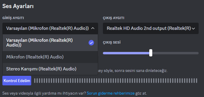 Mikrofon sürücüm Realtek audio, bir ara düzeldi sonra yine aynı şey oldu. Mikrofon jakıyla, kulaklık jakının yerini değiştiriyorum bu sefer bilgisayardan genel ses gelmiyor ama mikrofon çalışıyor. Sadece discord'da değil ses kaydedicisinde deneyeyim dedim onda da olmadı. Yardımcı olursanız sevinirim aşağıda görüntüler mevcut her yolu denedim lakin gene olmadı mikrofon bölümünün mikrofon simgesini seçtim, stereo karışımının mikrofon simgesini seçtim her yolu denedim olmadı. Öncelikle sakin olup sürücülerimin güncel olup olmadığını kontrol etmeme gerek yok hepsini güncel olarak daha 18 Ocak'ta bilgisayarı alır almaz yükledim.