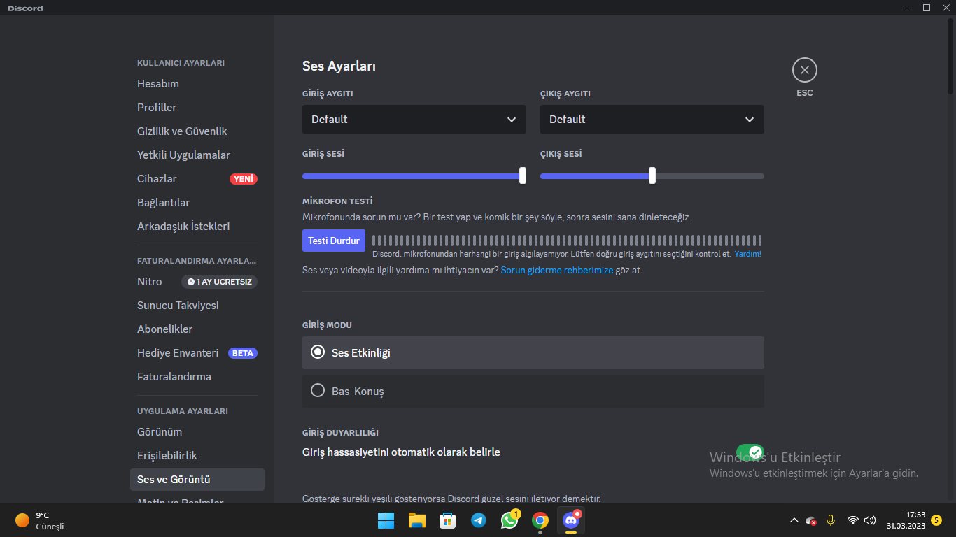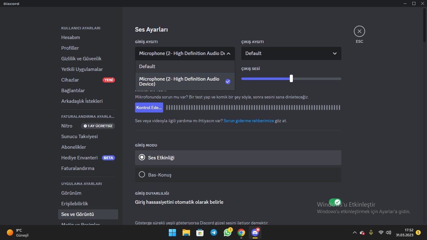 Discord'da mikrofondan ses alınmıyor