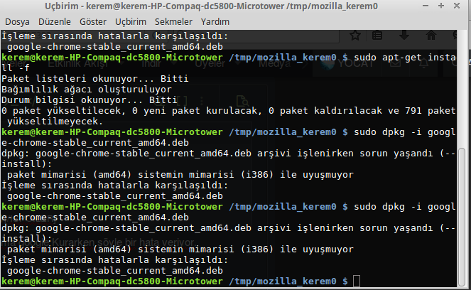 sudo apt-get install -fkomutunu girsemde olmuyor.