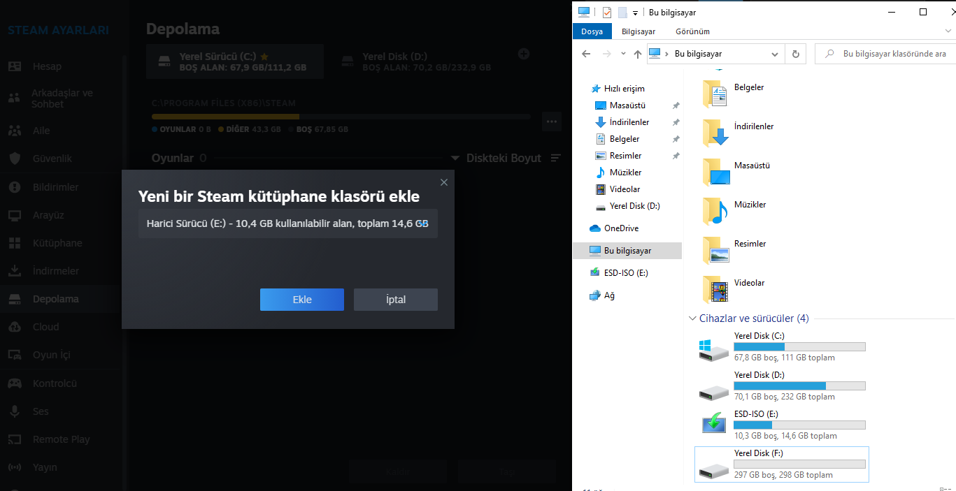 Biliyorum fakat sadece USB bellek görünüyor. Onun yanında aşağı doğru ok var bakarsanız oraya da tıklıyorum, yine de görünmüyor. Biçimlendirmem gerekiyor diski galiba. Sonucu yazarım.
