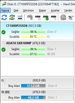 XPG'nin 512 GB'lık bir SSD var elimde elimdeki SSD bilgisayarı bir açtığımda görünmüyor bir açtığımda görünüyor birkaç kez restart attıktan sonra geliyor bazen görünüyor olsa da write hatası veriyor. 2 kere test yaptım birinde kıpkırmızı çıktı birinde yemyeşil :D + format da attım, ürünüm laptop olduğu için içini açmadım.