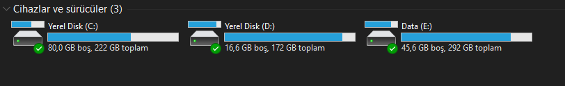 Merhaba arkadaşlar, fotoğraftaki gibi toplam 142 GB boş olan 3 diski birleştirip bir diskte 142 GB olmasını istiyorum bu mümkün mü? mümkünse nasıl yapabilirim?