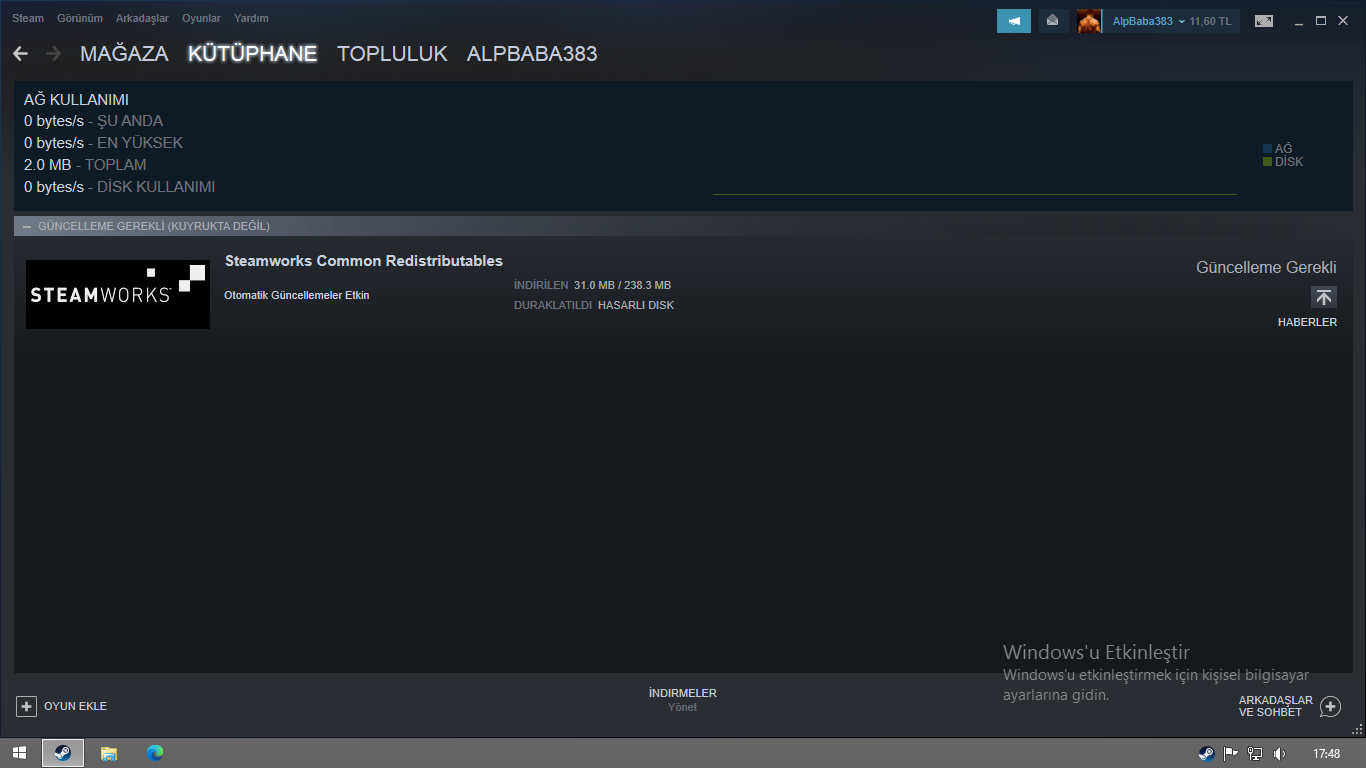 Hangi diske indirirken oluyor?@Assecreed Kablolarda sıkıntı yok ayrıca Steam'den bir şey indirmeye çalıştığımda bunun gibi bir hata veriyor.Eki Görüntüle 853849
