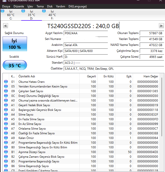 Evet.Transced SSD mi hocam bu ?