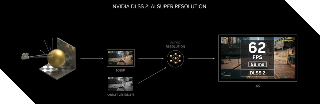 DLSS, Nvidia'nın geliştirdiği yapay zeka tabanlı bir yeniden ölçeklendirme kütüphanesidir.