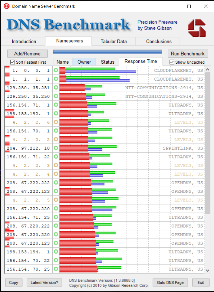 Hocam bende CloudFlare kullanıyordum aynı sorunu yaşadım oyüzden level3 e geçtim.1.1.1.1 DNS kullanıyordum ama son 1 haftadır sorun yaşıyorum DNS benchmark ile test yaptım kırmızı yeşil mavi renkler ne anlama geliyor?