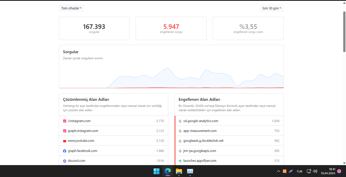 Örnek olarak sitelerden sorgu geliyor.